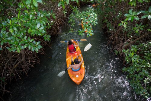 Kayak through the mangrove lagoon which leads to a secluded beach. Learn about the geology at South Coast Horizons and the region’s coastal environment. Tropical fish, crabs, jellyfish, sea birds, and other animals make their home in the mangroves, so be on the lookout for local wildlife on your eco-adventure. Hike to Goat Head Hill for a panoramic view of our neighboring islands and the south side of Antigua. The breath-taking view awaits you!